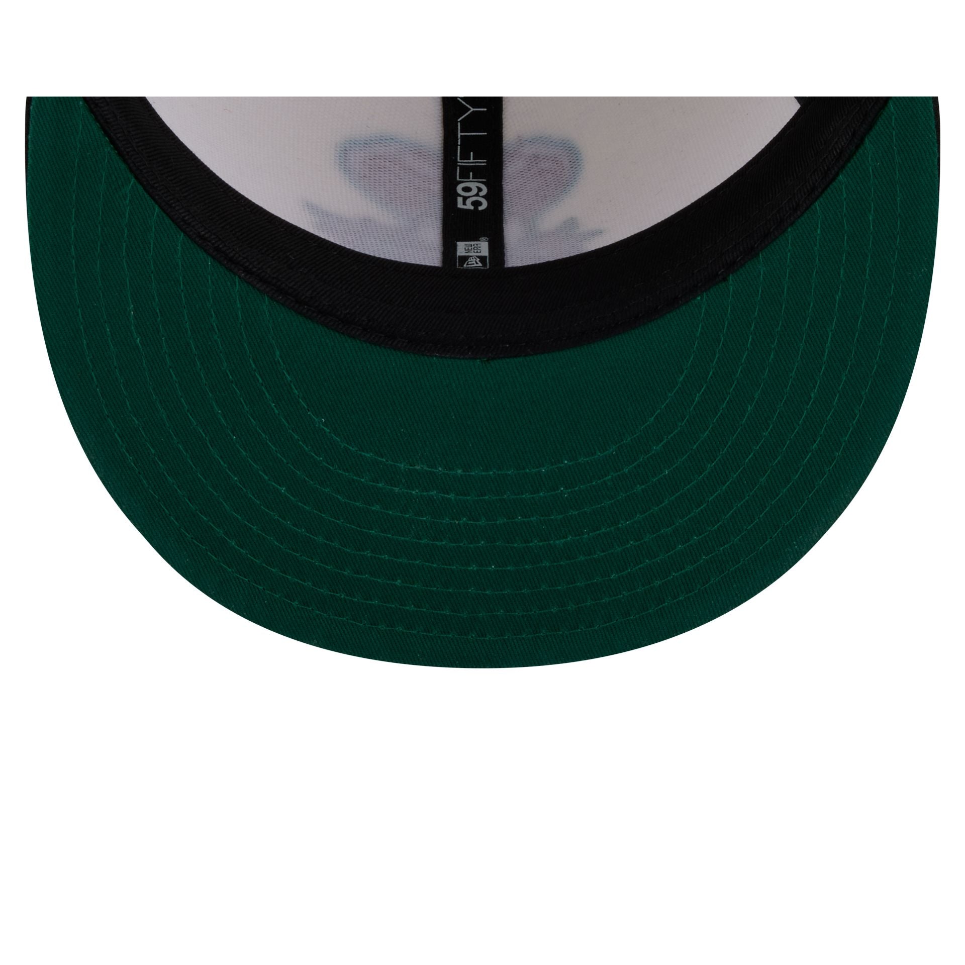 The Arizona Diamondbacks Day of the Dead Sugar Skull Mascot 59FIFTY Fitted Cap features an embroidered Diamondbacks Mascot with flowers at the front panels with a skeletal mascot at the right-wear side. Additional details include the MLB Batterman logo at the rear and a green undervisor.