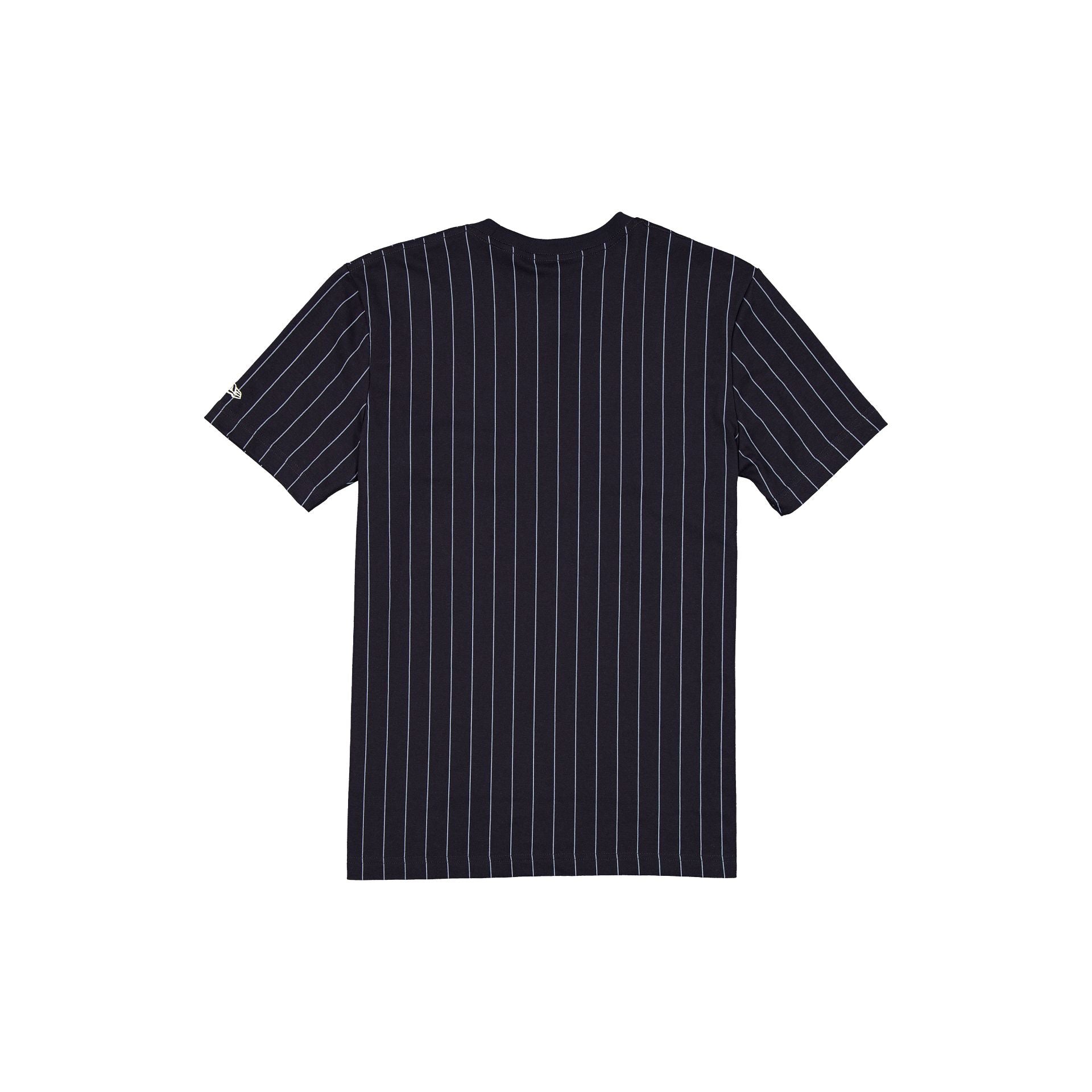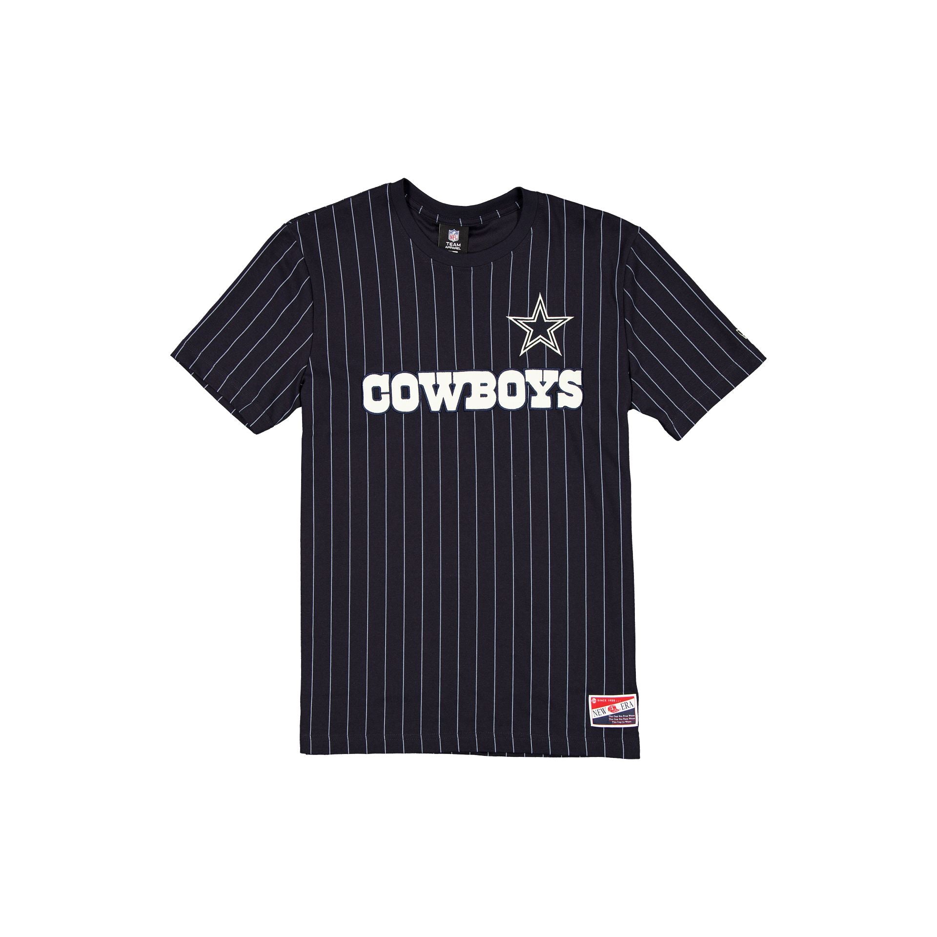 The Dallas Cowboys Throwback Retro Pinstripe T-Shirt features an embroidered Cowboys wordmark at the front with a twill applique logo at the left chest.