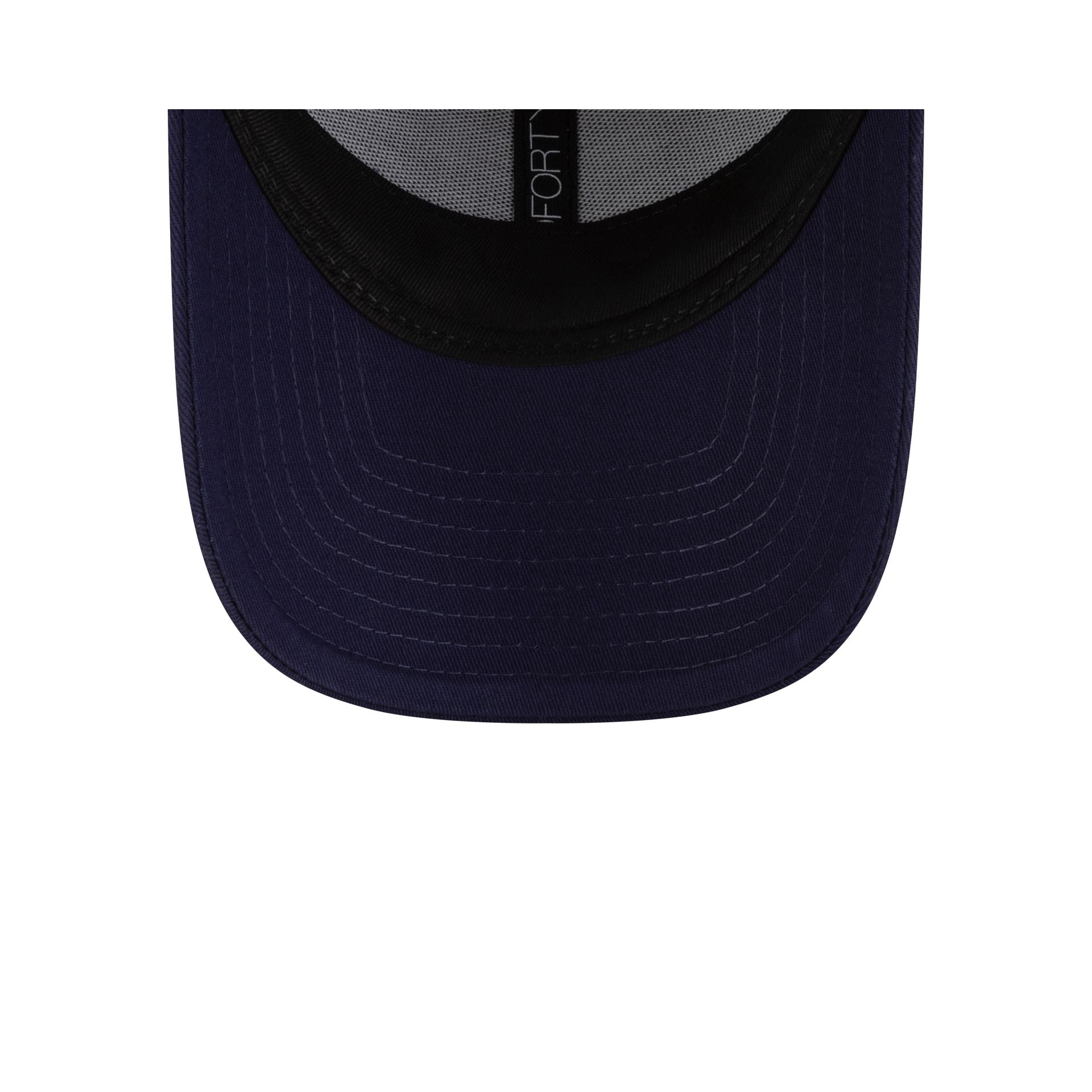 The FC Barcelona Pennant Flag 9FORTY M-Crown Snapback features an monochromatic embroidered Barcelona logo at the front panels with a snapback closure at the rear, a team pennant flag at the right-wear side, and a navy undervisor.