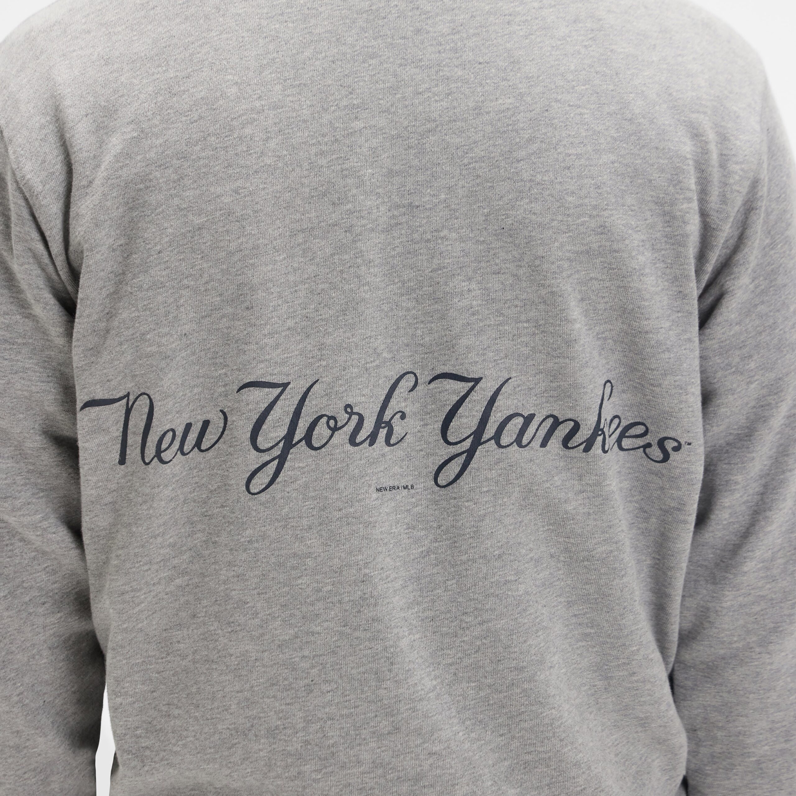 The New York Yankees Relaxed Heather Gray Crewneck features a screen-printed Yankees logo at the left chest and a script wordmark at the rear.